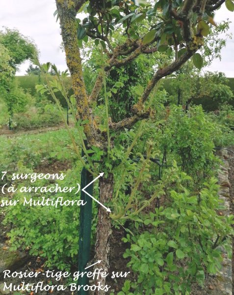 Principalement sur le tronc des rosiers tiges greffés sur CANINA, mais également des rosiers-tiges greffés sur MULTIFLORA BROOKS [Photos en bas de page]